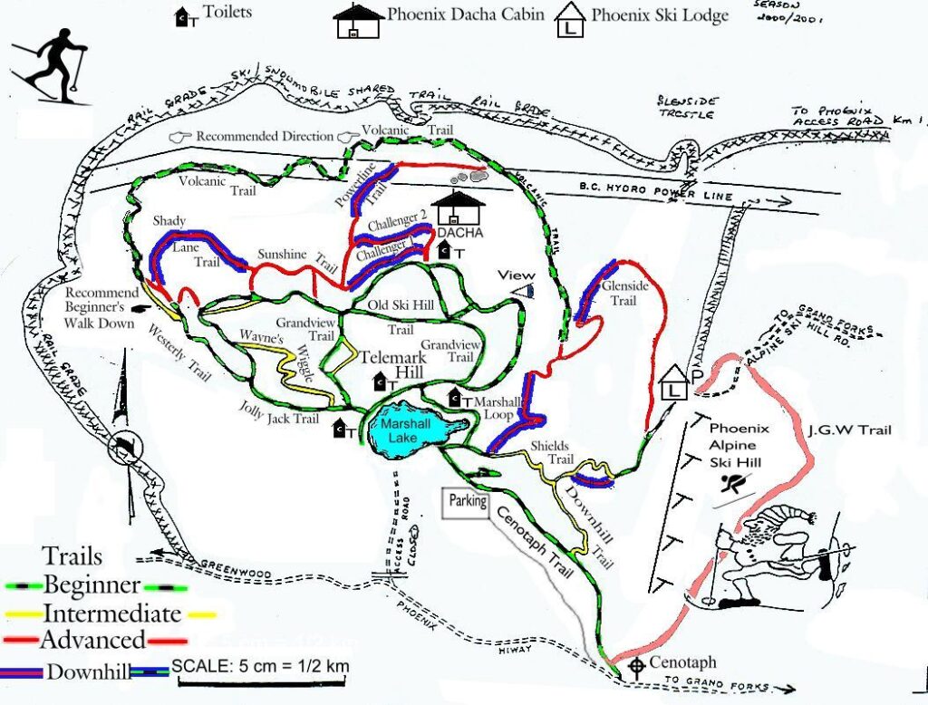 - Cenotaph, Downhill, Shields and Glenside were all different trails down to the downhill ski lodge. The groomer from the ski hill does come up a trail now called Phoenix.